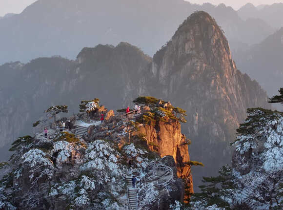 หิมะโปรยปรายปกคลุมภูเขาหวงซาน มณฑลอันฮุย จีน จนเกิดภาพทิวทัศน์งดงามราวภาพวาด