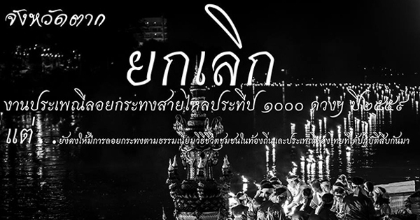 งดจัดงานประเพณีลอยกระทงสายไหลประทีป 1,000 ดวง จ.ตาก
