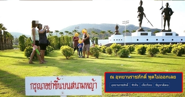 นักท่องเที่ยวไร้มารยาท เหยียบหญ้าในอุทยานราชภักดิ์ ทั้งที่มีป้ายห้าม