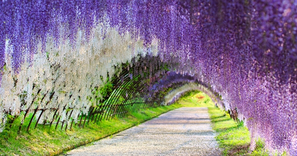 สวยสะพรั่งเมษายนนี้ อุโมงค์ดอกวิสทีเรีย ที่ฟุกุโอกะ ญี่ปุ่น
