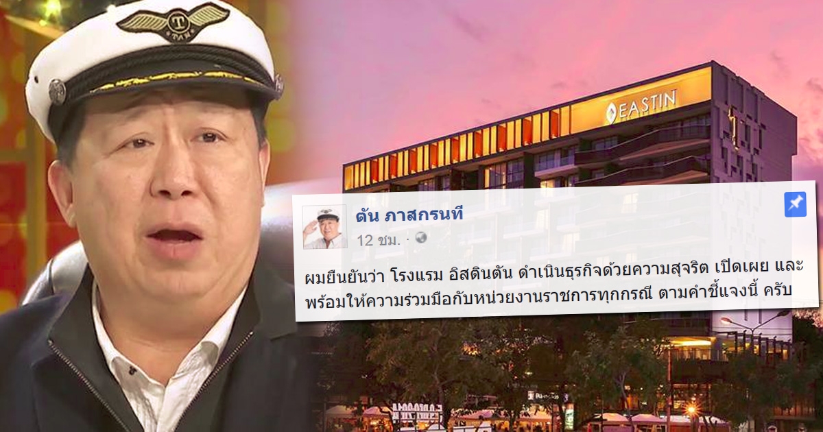 ตัน ภาสกรนที แถลงยัน ดำเนินธุรกิจโรงแรมอีสติน ตัน ด้วยความสุจริต