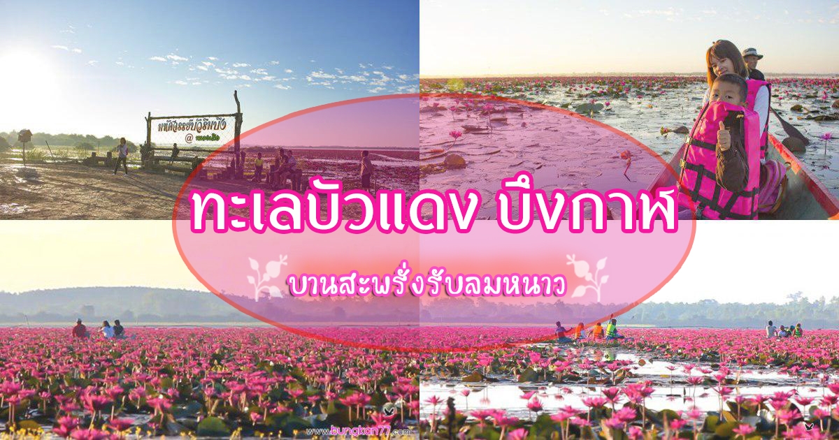 ทะเลบัวแดง บึงกาฬ ยลเสน่ห์บัวแดงบานกลางลมหนาวริมหนองเลิง