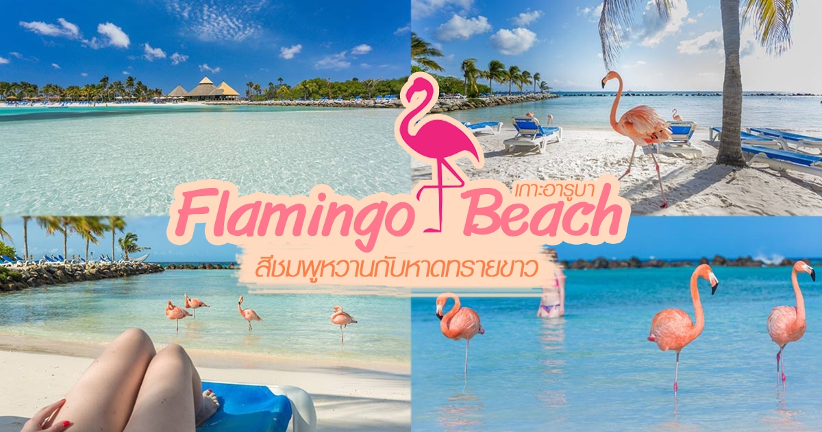 น่ารักตะมุตะมิ ชายหาดนกฟลามิงโก เกาะอารูบา สีชมพูหวานกับหาดทรายขาว