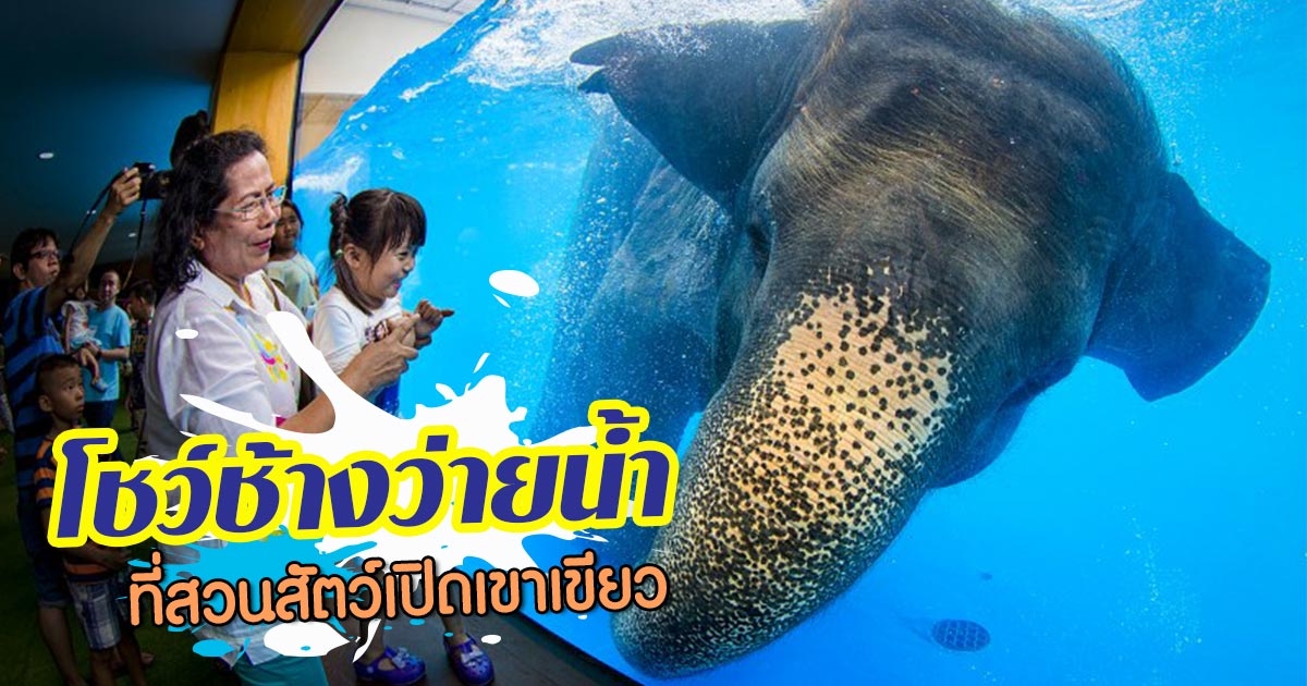 ตื่นตา ! โชว์ช้างว่ายน้ำ ที่สวนสัตว์เปิดเขาเขียว ชมกันแบบชัด ๆ ผ่านตู้กระจก