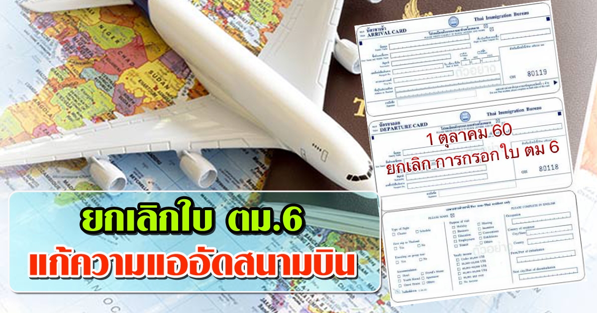 ไฟเขียว ยกเลิกใบ ตม.6 แก้ความแออัดสนามบิน เริ่ม 1 ต.ค. 60