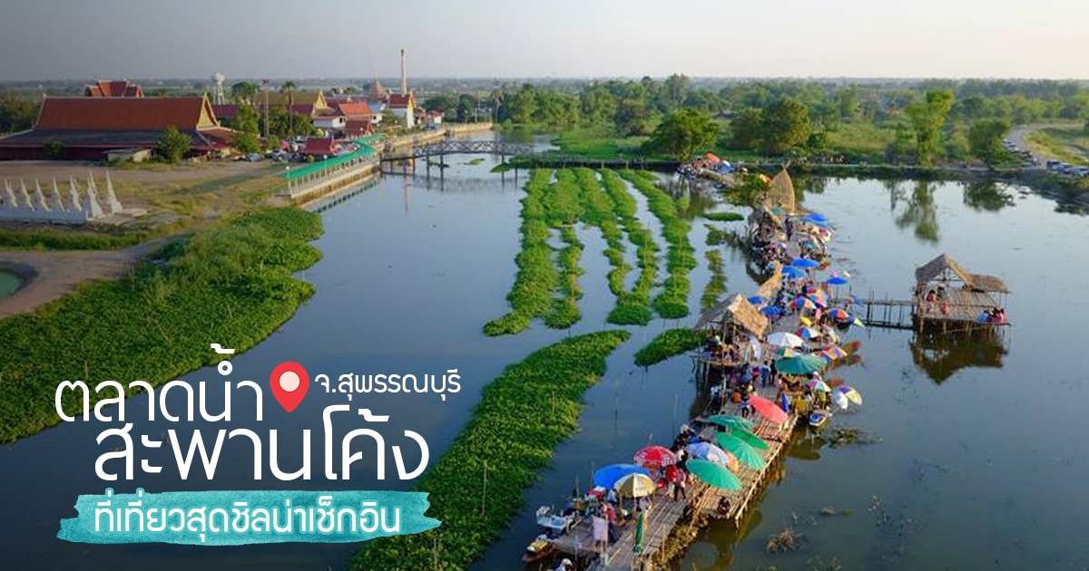 ตลาดน้ำสะพานโค้ง จ.สุพรรณบุรี เดินเล่นซื้อของบนสะพานไม้ไผ่กันเพลิน ๆ
