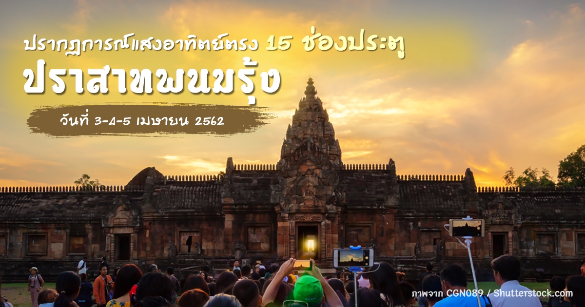 ชมปรากฏการณ์แสงอาทิตย์ตรง 15 ช่องประตู ปราสาทพนมรุ้ง วันที่ 3-5 เมษายน 2562