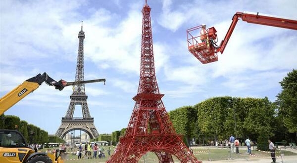 ฝรั่งเศสผุดหอไอเฟลแฝด สร้างจากเก้าอี้สีแดง 324 ตัว