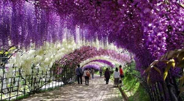 อุโมงค์ดอกวิสทีเรียที่ญี่ปุ่น สวยสะพรั่งดุจเดินในสวรรค์