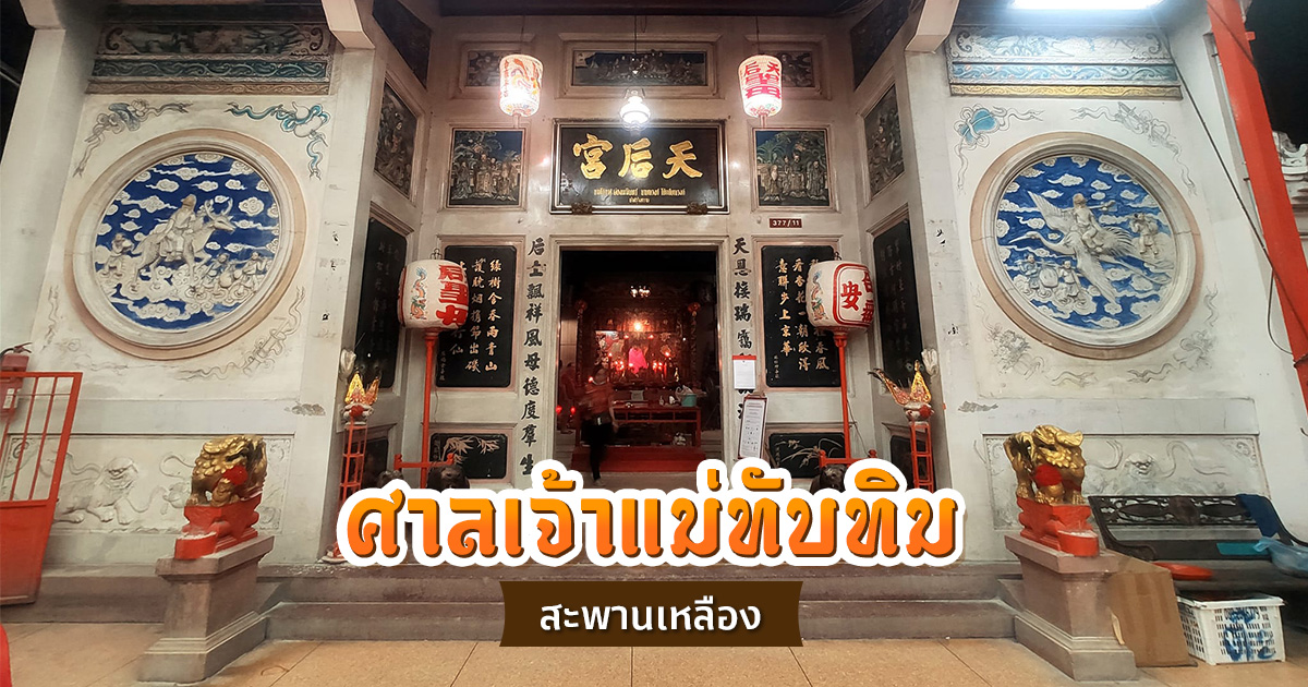 ศาลเจ้าแม่ทับทิมสะพานเหลือง ศาลเจ้าเก่าแก่ที่มีชื่อเสียงใจกลางกรุงเทพฯ มากมายด้วยศรัทธาของผู้คนที่หลั่งไหลมาสักการบูชาเจ้าแม่ทับทิมกันอย่างไม่ขาดสาย หากว่าใครเป็นสายมู หนึ่งในสถานที่ที่สายมูมักไปแวะเวียนกราบไหว้มักจะมี ศาลเจ้าแม่ทับทิมสะพานเหลือง อยู่ด้วยเสมอ โดยเฉพาะอย่างยิ่งในเรื่องความศักดิ์สิทธิ์ บวกกับกระแสโซเชียล ยิ่งทำให้มีผู้คนจากทั่วทุกสารทิศเดินทางมาที่แห่งนี้ วันนี้เราจะพาทุกคนไปทำความรู้จัก ศาลเจ้าแม่ทับทิมสะพานเหลือง กรุงเทพฯ ให้มากขึ้น ว่าตั้งอยู่ที่ไหน ขอพรอะไร รวมถึงขั้นตอนการไหว้ต่าง ๆ ตามมาดูด้วยกัน ศาลเจ้าแม่ทับทิมสะพานเหลือง ตั้งอยู่ในซอยจุฬาลงกรณ์ 9 แขวงวังใหม่ เขตปทุมวัน กรุงเทพฯ โดยเป็นคนละที่กับศาลเจ้าแม่ทับทิมแห่งใหม่ที่ทางจุฬาฯ สร้างให้บริเวณอุทยาน 100 ปี จุฬาฯ พิกัด Google Maps : ศาลเจ้าแม่ทับทิมสะพานเหลือง ศาลเจ้าแม่ทับทิมสะพานเหลือง มีประวัติความเป็นมาตั้งแต่สมัยพระบาทสมเด็จพระจุลจอมเกล้าเจ้าอยู่หัว รัชกาลที่ 5 ซึ่งเป็นช่วงที่ชาวจีนโล้ถิ่นฐานเข้ามาอยู่ในไทยเป็นจำนวนมาก โดยครอบครัวของนายจู๋ แซ่ตั้ง ได้อพยพจากอําเภอเก๊กเอี๊ย เมืองแต้จิ๋ว มณฑลกวางตุ้ง เข้ามายังประเทศไทยในช่วงเวลาดังกล่าวด้วย โดยพี่ชายของนายจู๋ (ไม่ทราบนาม) ได้อพยพเข้ามาก่อน และอาศัยอยู่แถวริมคลองบางรัก อยู่มาวันหนึ่งพี่ชายของนายจู๋เดินเลียบคลองบางรักออกไปทํางานตามปกติ และเห็นว่าในคลองมีวัตถุบางอย่างลอยทวนน้ำมาหยุดอยู่ในจุดที่เป็นน้ำวน แต่ก็ไม่ได้สนใจ เนื่องจากเห็นเป็นวัตถุลอยน้ำทั่วไป ผ่านไปหลายวันวัตถุนั้นก็ยังคงลอยวนอยู่บริเวณเดิมไม่ไปไหน จึงลงไปเก็บวัตถุนั้นขึ้นมา และพบว่าเป็นองค์เจ้าแม่ทับทิมแกะสลักด้วยไม้ จึงอัญเชิญขึ้นมาเก็บรักษาไว้ที่บ้าน แต่มิได้คิดทําการใดต่อไป เนื่องจากมีภาระหน้าที่ต้องทํามาหาเลี้ยงชีพ ต่อมานายจู๋ แซ่ตั้ง ได้อพยพตามพี่ชายเข้ามาภายหลัง โดยมาขึ้นฝั่งที่ท่าน้ำราชวงศ์ ในขณะนั้นชาวจีนอพยพรุ่นก่อนได้ตั้งรกรากทํามาหากินอยู่ที่เยาวราชอย่างหนาแน่นแล้ว ประกอบกับในเยาวราชไม่มีพื้นที่เหมาะสมสําหรับทําการเลี้ยงเป็ด นายจู๋จึงได้มองหาสถานที่ละแวกนั้น และเห็นว่าย่านสะพานเหลือง ซึ่งขณะนั้นยังเป็นทุ่งเป็นป่า เป็นพื้นที่ที่เหมาะสมสําหรับเลี้ยงเป็ด จึงลงหลักปักฐานที่สะพานเหลือง ส่งขายตลาดเยาวราชและตลาดทั่วไปจนกิจการดีขึ้นเป็นลําดับ ต่อมาพี่ชายของนายจู๋ แซ่ตั้ง เห็นว่ากิจการเลี้ยงเป็ดของน้องชายเจริญเติบโตได้ดี และเห็นว่านายจู๋พอ