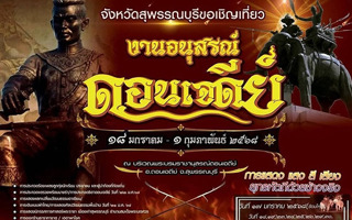 เที่ยวงานใหญ่ของเมืองยุทธหัตถี งานอนุสรณ์ดอนเจดีย์ และงานกาชาดจังหวัดสุพรรณบุรี ปี 2568 ชมการแสดงศึกช้างชนช้างสุดอลังการ และสนุกกับกิจกรรมต่าง ๆ มากมาย สุพรรณบุรี จังหวัดใกล้กรุงเทพฯ ที่มีแหล่งท่องเที่ยวให้เลือกหลากหลายรูปแบบ ทั้งธรรมชาติที่อุดมสมบูรณ์ หมู่บ้านแหล่งวิถีชุมชน และที่เที่ยวที่มีความสำคัญทางประวัติศาสตร์และวัฒนธรรม โดยเฉพาะ อนุสรณ์ดอนเจดีย์ หรือ พระบรมราชานุสรณ์ดอนเจดีย์ ซึ่งเป็นสถานที่ที่ก่อตั้งขึ้นเพื่อระลึกถึงวีรกรรมการชนช้างของสมเด็จพระนเรศวรมหาราช พระมหากษัตริย์แห่งกรุงศรีอยุธยา กับพระมหาอุปราชาแห่งพม่า ที่ยกทัพเข้ามาตีกรุงศรีอยุธยาในปี พ.ศ. 2135 ซึ่งทางจังหวัดสุพรรณบุรีได้มีการจัดงานเฉลิมฉลองพระบรมราชานุสรณ์ดอนเจดีย์ทุกปี เพื่อเชิดชูวีรกรรมอันยิ่งใหญ่ของสมเด็จพระนเรศวรมหาราช ซึ่งวันนี้เรามีข้อมูลรายละเอียดเกี่ยวกับงานอนุสรณ์ดอนเจดีย์ และงานกาชาด สุพรรณบุรี ครั้งที่ 66 ประจำปี 2568 มาฝากกัน ดังนี้ จังหวัดสุพรรณบุรี ขอเชิญเที่ยวงานอนุสรณ์ดอนเจดีย์ และงานกาชาดจังหวัดสุพรรณบุรี ครั้งที่ 66 ประจำปี 2568 ระหว่างวันที่ 18 มกราคม - 1 กุมภาพันธ์ 2568 บริเวณพระบรมราชานุสรณ์ดอนเจดีย์ อำเภอดอนเจดีย์ จังหวัดสุพรรณบุรี เพื่อเป็นการเทิดพระเกียรติสมเด็จพระนเรศวรมหาราช และรำลึกถึงมหาวีกรรมอันยิ่งใหญ่ของพระองค์ที่ทรงกอบกู้เอกราชให้ชาติไทยมาถึงทุกวันนี้ อีกทั้งยังเป็นการส่งเสริมการท่องเที่ยวจังหวัดสุพรรณบุรี ภายในงานมีการแสดงการต่อสู้บนหลังช้างสมจริง ช้างชนช้าง, การแสดงแสง สี เสียง ที่ยิ่งใหญ่ในศึกยุทธหัตถี, การแสดงเวทีกลาง, การแสดงโชว์ศิลปวัฒนธรรม, การแสดงประชันแตรวง การดนตรี sc.band, การแสดงดนตรีจากโรงเรียนบรรหาร-แจ่มใส วิทยา 1, การแสดงดนตรีกองทัพบก, การแสดงดนตรีเพื่อชีวิต วงเลิศดวงเลิศคันไถ, การแสดงโขนจากสมาคมศิลปะเพื่อเยาวชน กรมส่งเสริมวัฒนธรรม กระทรวงวัฒนธรรม, การแสดงชาติพันธุ์ไทยพวน บางปลาม้า ไทยพื้นถิ่น ตำบลรั้วใหญ่ และลาวเวียง บ้านดอนคา, การแสดงดนตรีไทยจากนักเรียนโรงเรียนสุพรรณบุรีปัญญานุกูล, การแสดงเพลงอีแซวของวิทยาลัยพยาบาลบรมราชชนนี และโรงเรียนวัดบ้านกรวด, การแสดงเพลงทรงเครื่อง เรื่องแก้วหน้าม้า ตอนถวายลูก, การแสดงดนตรีไทยจากบ้านดนตรีไทย by ครูเอียด, การแสดงดนตรีคอนเสิร์ตจากศิลปินชื่อดัง และการออกร้านจำหน่ายสินค้าต่าง ๆ มากมาย การแสดงยุทธหัตถี หรือการต่อสู้บนหลังช้างสมจริง ช้างชนช้าง แสดงแสง สี เสียง ที่ยิ่งใหญ่ จะทำการแสดงรวม 10 วัน วันละ 1 รอบ โดยเริ่มแสดงตั้งแ