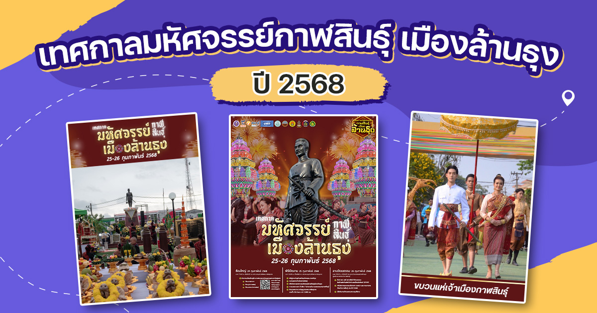 เตรียมตัวให้พร้อม เทศกาลมหัศจรรย์กาฬสินธุ์ เมืองล้านธุง ที่ทุกคนรอคอยกำลังจะกลับมา จะมีรายละเอียดอย่างไร เรามีข้อมูลมาฝากกัน กาฬสินธุ์ ดินแดนแห่งถิ่นฟอสซิลและเมืองดึกดำบรรพ์ และยังเป็นศูนย์กลางแห่งวัฒนธรรมอีสานหลายอย่าง โดยเฉพาะ ธุงอีสาน ทะเลธุง พุทธบูชา แห่งเมืองฟ้าแดดสงยาง โดย ธุง เป็นสัญลักษณ์ของการทำความดีเพื่อถวายเป็นพุทธบูชา จุดกำเนิดเล็ก ๆ ก่อให้เกิดเป็นประเพณีที่งดงาม ผสานกับการสืบสานพระพุทธศาสนา และยิ่งเพิ่มความล้ำค่าตระการตาจนเกิดเป็น ทะเลธุง นั่นเอง ซึ่งในปีนี้ทางจังหวัดกาฬสินธุ์ได้มีการจัดงานเทศกาลมหัศจรรย์กาฬสินธุ์ เมืองล้านธุง ปี 2568 ขึ้น ส่วนจะมีรายละเอียดเป็นอย่างไร ไปติดตามกันได้เลย ทั้งนี้ ธุง เป็นวัฒนธรรมทางความเชื่อของชาวอีสาน และเป็นศิลปะของการร้อยเส้นด้ายสลับสีสวยงาม เมื่อนำมาเรียงร้อยตั้งแต่เล็กไปจนถึงธุงต้นใหญ่ แกว่งปลิวไปตามลม ยิ่งสร้างความงดงามที่ลุ่มลึกได้เป็นอย่างดี ข้อมูลจากเฟซบุ๊ก เทศบาลเมืองกาฬสินธุ์ ได้ประกาศรายละเอียดเกี่ยวกับเทศกาลมหัศจรรย์กาฬสินธุ์ เมืองล้านธุง ตื่นตาตื่นใจกับทะเลธุงอีสานสุดยิ่งใหญ่ทั่วเมืองกาฬสินธุ์ เช็กอินให้โลกสะท้านกับประวัติศาสตร์หน้าใหม่ ระหว่างวันที่ 25-26 กุมภาพันธ์ 2568 อนุสาวรีย์พระยาชัยสุนทร ศูนย์ราชการจังหวัดกาฬสินธุ์ วงเวียนโปงลาง หอศิลป์กาฬสินธุ์ วัดใต้โพธิ์ค้ำ วันที่ 24 กุมภาพันธ์ 2568 (ซ้อมใหญ่) เวลา 15.00 น. เป็นต้นไป บริเวณอนุสาวรีย์พระยาชัยสุนทร กิจกรรมซ้อมใหญ่รำบวงสรวงดวงวิญญาณพระยาชัยสุนทร ฟ้อนมาลัยจำปา ฟ้อนภูไทกาฬสินธุ์ ฟ้อนเพลงเบิ่งกาฬสินธุ์ วันที่ 25 กุมภาพันธ์ 2568 พิธีเปิดงาน เวลา 14.00 น. เป็นต้นไป บริเวณอนุสาวรีย์พระยาชัยสุนทร พิธีสูตรขวัญบ้านขวัญเมืองและบายศรีธุง ตระการตากับขบวนแห่เจ้าเมืองกาฬสินธุ์ พิธีเปิดงานเทศกาลมหัศจรรย์กาฬสินธุ์ เมืองล้านธุง การแสดงแสง สี เสียง "เล่าขานตำนานบรรพชนคนกาฬสินธุ์" รำบวงสรวงดวงวิญญาณพระยาชัยสุนทร จากทั้ง 18 อำเภอ กว่า 1,000 คน วันที่ 26 กุมภาพันธ์ 2568 ลานวัฒนธรรม เวลา 16.00 น. เป็นต้นไป บริเวณอนุสาวรีย์พระยาชัยสุนทร ศูนย์ราชการจังหวัดกาฬสินธุ์ ช้อป แชะ แชร์ ตลาดสินค้าวัฒนธรรม สินค้าหนึ่งตำบลหนึ่งผลิตภัณฑ์ (OTOP) พิธีเปิดงานมหกรรมโปงลาง แพรวา และงานกาชาด จังหวัดกาฬสินธุ์ ประจำปี 2568 เช็กอินลานวัฒนธรรม ทะเลธุงอีสาน 5 จุด รอบเมืองกาฬสินธุ์ สอบถามรายละเอียดเพิ่มเติมได้ที่เฟซบุ๊ก เทศบาลเมืองกาฬสินธุ์ โทรศัพท์ 0 4381 1671 หรือเฟซบุ๊ก PR.Kalasin ประชาสัมพันธ์จังหวัดกาฬสินธุ์ แล้วมาร่วมเป็นหนึ่งในภาพป