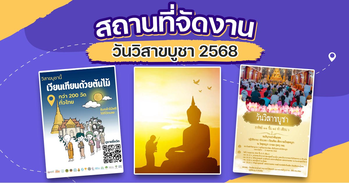 สถานที่จัดงานวันวิสาขบูชา 2568 เวียนเทียน เสริมบุญ ตามวิถีพุทธ