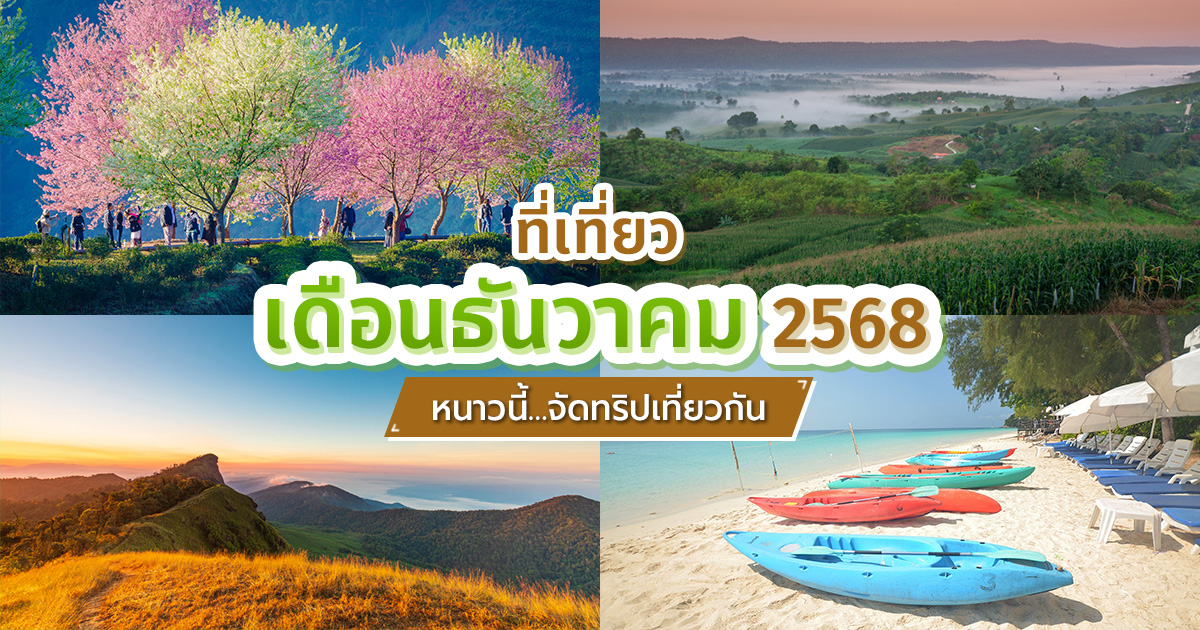 ที่เที่ยวเดือนธันวาคม 2568 หลากหลายจุดหมายท่องเที่ยวสุดฟิน ทั้งธรรมชาติ เมืองเล็กอบอุ่น และงานเทศกาลสุดคึกคัก ชวนคุณออกเดินทางสัมผัสบรรยากาศหนาวสนุกส่งท้ายปี เดือนธันวาคม 2568 นี้เป็นช่วงเวลาที่เหมาะที่สุดสำหรับการออกเดินทางท่องเที่ยว ไม่ว่าจะสัมผัสอากาศหนาว ชมธรรมชาติที่สวยงาม หรือค้นพบบรรยากาศอบอุ่นของเมืองต่าง ๆ ที่เต็มไปด้วยชีวิตชีวาและความสนุกสนาน เป็นโอกาสดีที่จะวางแผนหลีกหนีความวุ่นวาย พร้อมเปิดประสบการณ์ใหม่ ๆ ให้ตัวเองก่อนสิ้นปี ว่าแต่จะมีที่เที่ยวไหนน่าสนใจ ตามมาเก็บลิสต์ด้วยกันเลย ดอยแม่สลองในช่วงเดือนธันวาคมถือเป็นสวรรค์ของคนรักความหนาวและธรรมชาติ เพราะเป็นช่วงที่อากาศเย็นสบายถึงหนาวจัดตลอดวัน เหมาะอย่างยิ่งสำหรับการมาสัมผัสทะเลหมอกยามเช้าตรู่ที่ปกคลุมหุบเขาอย่างงดงาม และที่พลาดไม่ได้คือการชม "ดอกนางพญาเสือโคร่ง" ที่เริ่มผลิดอกสีชมพูหวานฉ่ำตามจุดต่าง ๆ บนดอย นอกจากนี้ ยังสามารถเยี่ยมชมไร่ชาขั้นบันไดอันเขียวขจี ลิ้มลองชาชั้นดี และสัมผัสวัฒนธรรมอันเป็นเอกลักษณ์ของชาวไทยภูเขาและชุมชนชาวจีนยูนนานที่ยังคงสืบทอดมาจนถึงปัจจุบัน ซึ่งทำให้การมาเที่ยวแม่สลองในช่วงปลายปีนี้เต็มไปด้วยเสน่ห์และความประทับใจไม่รู้ลืม จุดหมายปลายทางของนักล่าหมอกและคนรักความหนาวเย็นอย่างแท้จริง ท่ามกลางวิวหุบเขาสลับซับซ้อนและแม่น้ำโขงที่กั้นระหว่างไทย-ลาวอย่างงดงามตระการตา ซึ่งสามารถขึ้นไปชมได้จากเนิน 102 และ เนิน 103 ที่เป็นจุดชมวิวหลักสำหรับการชมพระอาทิตย์ขึ้นและทะเลหมอกแบบพาโนรามา นอกจากนี้ พร้อมกับเรียนรู้ประวัติศาสตร์ของหมู่บ้านชาวจีนฮ่อ อดีตทหารกองพล 93 ที่เข้ามาตั้งถิ่นฐานและสืบทอดวัฒนธรรมอันเป็นเอกลักษณ์ไว้ได้อย่างน่าสนใจ ที่อยู่ : ตำบลปอ อำเภอเวียงแก่น จังหวัดเชียงราย ดอยอ่างขางในช่วงเวลานี้ คือช่วงเวลาที่งดงามที่สุดสำหรับการเดินทางไปสัมผัสความหนาวเย็น เพราะเป็นฤดูที่แปลงดอกไม้เมืองหนาว ภายในสถานีเกษตรหลวงอ่างขาง พากันออกดอกบานสะพรั่ง พร้อมทั้งเพลิดเพลินกับการชมดอกนางพญาเสือโคร่ง ที่เริ่มทยอยบานอวดสีชมพูหวานท่ามกลางอากาศเย็นจัด นอกจากนี้ยังเป็นโอกาสดีที่จะไปเยือนหมู่บ้านชาวเขา ใกล้เคียงเพื่อเรียนรู้วิถีชีวิตที่น่าสนใจ และสัมผัสกับทะเลหมอกยามเช้าที่จุดชมวิวไร่ชาสองพัน ซึ่งจะทำให้ทริปปลายปีของคุณเต็มไปด้วยสีสันและความสดชื่นท่ามกลางขุนเขาที่ปกคลุมด้วยไอหมอกหนาว อีกหนึ่งตัวเลือกที่เที่ยวช่วงเดือนธันวาคมที่ไม่ควรพลาด หมู่บ้านเล็ก ๆ ในหุบเข