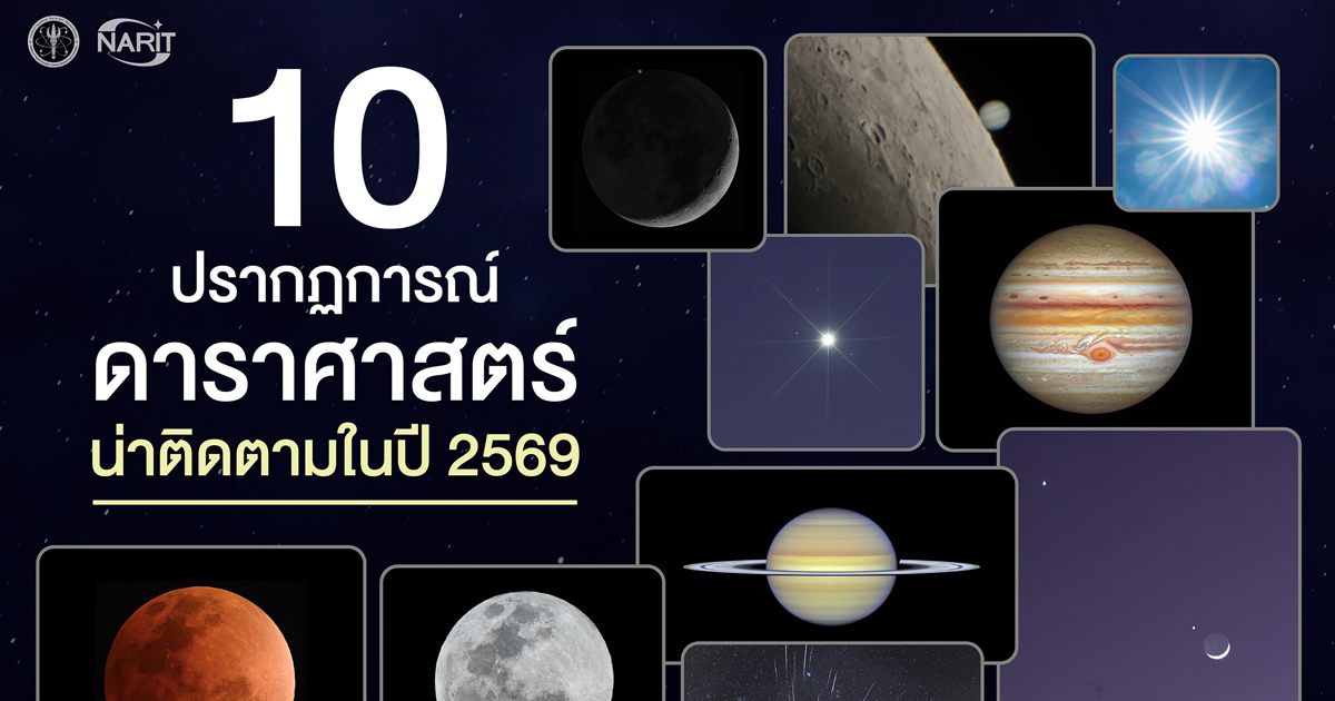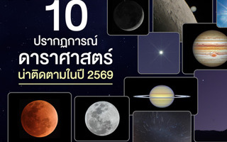 10 ปรากฏการณ์ดาราศาสตร์น่าติดตามในปี 2569 ท้องฟ้ายังมีเรื่องราวให้เงยหน้ามองตลอดทั้งปี ชวนออกเดินทางตามล่าความมหัศจรรย์ของจักรวาล พร้อมเปิดประสบการณ์เที่ยวใต้แสงดาว ปี 2569 คืออีกหนึ่งปีที่ท้องฟ้าจะกลายเป็นจุดหมายปลายทางของนักเดินทางและคนรักการเฝ้ามองดวงดาวตลอดทั้งปีจะมีเหตุการณ์น่าตื่นตาให้วางแผนออกทริป ทั้งคืนที่ดาวตกพร่างพราย การเคลื่อนตัวของดวงดาวและดาวเคราะห์ รวมถึงช่วงเวลาพิเศษที่ท้องฟ้าเผยความงามแบบหาดูได้ยาก เกริ่นชวนแพ็กกระเป๋า ออกไปสัมผัสประสบการณ์ท่องเที่ยวเคียงคู่ความมหัศจรรย์ของฟากฟ้าสำหรับปีหน้ากัน วันที่ 10 มกราคม 2569 ดาวพฤหัสบดีจะโคจรมาอยู่ในตำแหน่งตรงข้ามดวงอาทิตย์ (Jupiter Opposition) จึงมีระยะใกล้โลกที่สุดในรอบปี ห่างจากโลกประมาณ 633 ล้านกิโลเมตร สังเกตการณ์ได้ตลอดคืน ปรากฏสว่างบนท้องฟ้า หากชมผ่านกล้องโทรทรรศน์กำลังขยายตั้งแต่ 30 เท่าขึ้นไป จะสามารถสังเกตเห็นดวงจันทร์กาลิเลียน รวมถึงแถบเมฆที่สวยงามของดาวพฤหัสบดี และหากใช้กำลังขยาย 100 เท่าขึ้นไป จะสามารถเห็น “จุดแดงใหญ่” พายุหมุนยักษ์ที่มีขนาดใหญ่กว่าโลกถึง 1.3 เท่า ได้อย่างชัดเจน ปรากฏการณ์นี้เกิดขึ้นทุก ๆ ประมาณ 13 เดือน วันที่ 3 มีนาคม 2569 ตรงกับวันมาฆบูชา ช่วงเวลาประมาณ 15.44 น. ถึง 21.23 น. (ตามเวลาประเทศไทย) ในไทยจะเริ่มสังเกตได้ตั้งแต่ดวงจันทร์โผล่พ้นขอบฟ้า เวลาประมาณ 18:23 น. เป็นต้นไป (เวลา ณ กรุงเทพฯ ซึ่งจังหวัดอื่นเวลาอาจต่างจากนี้ไปเล็กน้อย) ทางทิศตะวันออก ซึ่งตรงกับช่วงที่กำลังเกิดจันทรุปราคาเต็มดวงพอดี ช่วงดังกล่าวดวงจันทร์เต็มดวงปรากฏเป็นสีแดงอิฐ จนถึงเวลาประมาณ 19:02 น. หลังจากนั้นจะเกิดเป็นจันทรุปราคาบางส่วน จนสิ้นสุดปรากฏการณ์เวลาประมาณ 21:23 น. มองเห็นได้ด้วยตาเปล่าทั่วไทย ปรากฏการณ์ “ดวงจันทร์เต็มดวงไกลโลกที่สุดในรอบปี” (Micro Full Moon) จะตรงกับวันที่ 31 พฤษภาคม 2569 ซึ่งตรงกับวันวิสาขบูชา นอกจากนี้ยังเป็นดวงจันทร์เต็มดวงครั้งที่สองของเดือน หรือ บลูมูน (Blue Moon) เกิดขึ้นไม่บ่อยนัก เรียกว่า “ไมโครบลูมูน (Micro Blue Moon)” ดวงจันทร์เต็มดวงจะมีขนาดปรากฏเล็กว่าปกติเล็กน้อย สำหรับปรากฏการณ์ดวงจันทร์เต็มดวงใกล้โลกที่สุดในรอบปี (Super Full Moon) จะตรงกับวันที่ 24 ธันวาคม 2569 ซึ่งตรงกับวันคริสต์มาสอีฟพอดี ดวงจันทร์เต็มดวงจะมีขนาดปรากฏใหญ่กว่าปกติเล็กน้อย วันที่ 14 กันยายน 2569 เวลาประมาณ 19.28-20.34 น. (เวลา ณ กรุงเทพมหานคร) เริ่มสังเกตการณ์ได้ตั้งแต่ช่วงหัวค่ำ หลังดวงอาทิตย์ตกลับขอบฟ้า ทางทิศตะวันตก ในช่วงเวลาประมาณ 19.28 น. ดวงจันทร์จะค่อย ๆ เคลื่อนที่ไปบังดาวศุกร์ จนดาวศุกร์ลับห