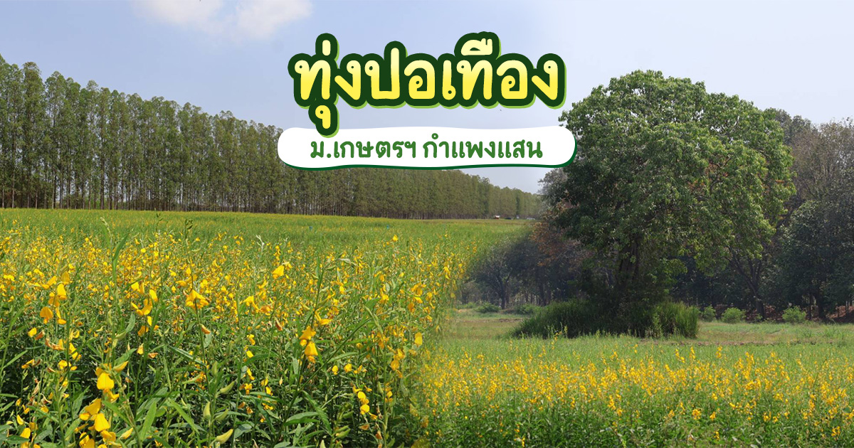 ทุ่งปอเทือง ม.เกษตรฯ กำแพงแสน ชวนเช็กอินทุ่งปอเทืองสีเหลืองสดใส สวยสะดุดตาต้องแวะ ใครมองหาทริปใกล้กรุง บรรยากาศดี ๆ เห็นทีต้องมาหน่อยแล้ว ช่วงนี้ใครที่เดินทางมาชมชมพูพันธุ์ทิพย์ ม.เกษตรฯ กำแพงแสน ที่กำลังออกดอกสวยสุด ๆ แล้ว และถ้าใครได้รูปสวยแล้วแต่ยังไม่รับกลับบ้าน เรามีอีกพิกัดทุ่งดอกไม้สวยของที่นี่ให้ได้แวะชม กับทุ่งปอเทือง ม.เกษตร กำแพงแสน บอกเลยว่าสวยไม่แพ้กัน คนที่กำลังมองหาทริปสั้น ๆ ใกล้กรุงเทพฯ แบบได้ฟีลธรรมชาติเต็ม ๆ ทุ่งปอเทือง ม.เกษตร กำแพงแสน แห่งนี้ตั้งอยู่ข้างอุโมงค์ยูคาลิปตัส บริเวณศูนย์การเรียนรู้นวัตกรรมเกษตร (พิกัด : ทุ่งปอเทือง ม.เกษตร กำแพงแสน) ต้องบอกว่าทุ่งปอเทือง ม.เกษตร กำแพงแสน ที่นี่ไม่ได้มีแค่ต้นไม้ดอกไม้ธรรมด แต่คือ "ทะเลสีเหลือง" สุดลูกหูลูกตาบนพื้นที่หลายสิบไร่ ด้วยความที่เป็นพื้นที่วิจัยและสาธิตทางเกษตรกรรม ทำให้ต้นปอเทืองที่นี่เติบโตอย่างสมบูรณ์ ต้นสูงท่วมหัว ดอกแน่นสะพรั่ง ให้ฟีลสบาย ๆ โล่ง โปร่ง ลมพัดเอื่อย ๆ เดินเล่นได้เพลิน ๆ ช่วงที่ดอกบานเต็มทุ่งจะสวยเป็นพิเศษ โดยเฉพาะตอนเช้าและเย็น แสงนุ่ม ๆ ถ่ายรูปขึ้นสุด ๆ แนะนำเช็กช่วงบานก่อนเดินทาง จะได้ไม่พลาดช็อตสวย ๆ ซึ่ง ณ วันที่ 23 กุมภาพันธ์ ดอกปอเทืองกกำลังออกดอกสวยงาม โดยจะบานอย่างนี้ไปประมาณ 50-60 ก่อนที่จะไถกลบต่อไป ใครที่เดินทางมาเที่ยวชมทุ่งปอเทือง ม.เกษตร กำแพงแสน แนะนำว่าให้พกร่ม หมวก มาด้วย เพราะช่วงนี้อากาศค่อนข้างร้อน และอย่าดึง รั้ง และหักกิ่งต้นปอเทือง เพราะกิ่งค่อนข้างเปราะและหักง่ายมาก ๆ ไว้เก็บความสวยงามให้ส่งต่อให้คนอื่น ๆ ได้มาเชยชมด้วย ถ้าอยากเติมสีเหลืองสดใสให้วันธรรมดา ลองแวะมาที่ทุ่งปอเทือง ม.เกษตรฯ กำแพงแสน ทริปสั้น ๆ ใกล้กรุงเทพฯ ที่ได้ทั้งพักผ่อนและรูปสวยกลับบ้าน ^ ^ หมายเหตุ : ข้อมูลอาจมีการเปลี่ยนแปลงกรุณาตรวจสอบอีกครั้ง สวนดอกไม้ เที่ยวได้ทั้งปี ไปถ่ายรูป พักใจกับดอกไม้สวย ๆ หลากสีสันทั่วไทย อัปเดตดอกชมพูพันธุ์ทิพย์ 2569 ม.เกษตรฯ กำแพงแสน บานเมื่อไหร่ ไปตอนไหนดี 30 สถานที่ท่องเที่ยว นครปฐม สนุกครบรส ไม่ไกลกรุงเทพฯ ที่เที่ยวแถวบางเลน นครปฐม ปักหมุด 8 สถานที่ท่องเที่ยวไม่ควรพลาด ขอบคุณข้อมูลและภาพจาก : เฟซบุ๊ก มหาวิทยาลัยเกษตรศาสตร์ วิทยาเขตกำแพงแสน