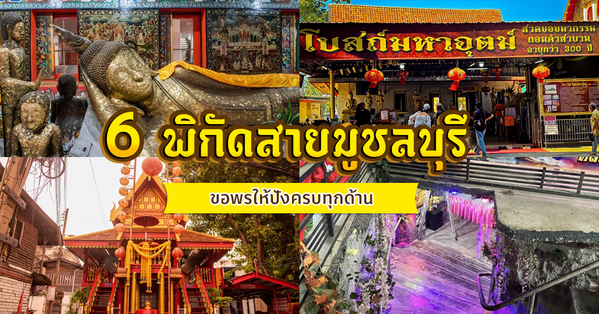 สายมูต้องห้ามพลาด 6 พิกัดชลบุรี รวมวัดและศาลเจ้าชื่อดัง ขอพร เสริมดวง ปังทั้งการงาน การเงิน และความรัก แวะเที่ยวใกล้กรุง ได้ทั้งบุญ ได้ทั้งความสบายใจในทริปเดียว สายมูเตรียมปักหมุด 6 พิกัดชลบุรี ทริปใกล้กรุง ที่ได้ทั้งเที่ยวและเสริมดวงในวันเดียว รวมจุดไหว้ขอพรยอดนิยมที่หลายคนแวะไปขอเรื่องงาน เงิน และความรัก บรรยากาศสงบ เดินทางง่าย เหมาะทั้งสายบุญและสายเที่ยวที่อยากเติมพลังใจให้ชีวิต ใครกำลังมองหาทริปสั้น ๆ แต่ได้ทั้งความอิ่มเอมและความสบายใจ ลิสต์นี้คือคำตอบครบจบในทริปเดียว ศาลเจ้าพ่อหลักเมืองชลบุรี หรือนามพระราชทานว่า "สิริมหามงคลชลบุรี" สันนิษฐานว่าสร้างขึ้นตั้งแต่สมัยอยุธยาตอนปลาย ตัวศาลเป็นเรือนไม้ทรงไทยสีแดงสดแซมทอง ยกพื้นสูง ข้างศาลมีต้นโพธิ์ใหญ่ร่มรื่น หันหน้าลงทะเล และด้านหลังมีบ่อน้ำที่ชาวบ้านเรียกว่า "บ่อศาลเจ้า" บรรยากาศเงียบสงบ เป็นเสน่ห์เฉพาะตัวที่หาจากศาลหลักเมืองจังหวัดอื่นไม่ได้ สำหรับเหล่าสายมู บอกเลยว่าที่นี่คือของจริง โดยเฉพาะเรื่องการขอพรเรื่อง ความมั่นคงในหน้าที่การงาน และความสำเร็จในชีวิต เปรียบเสมือนการมาวางรากฐานให้ชีวิตแข็งแกร่งเหมือนเสาหลักเมือง ใครที่กำลังจะเริ่มโปรเจกต์ใหม่ หรืออยากให้ชีวิตราบรื่นไม่มีอุปสรรค แนะนำให้มากราบขอพรเจ้าพ่อหลักเมืองและองค์เทพเจ้าต่าง ๆ ภายในศาล ไหว้เสร็จแล้วจะไปหาของอร่อยกินแถวตลาดหน้าเก๋งต่อก็ครบสูตรทริปสายมูอิ่มบุญอิ่มท้องแน่นอนเลย ที่อยู่ : ตำบลบางปลาสร้อย อำเภอเมืองชลบุรี จังหวัดชลบุรี เฟซบุ๊ก : ศาลเจ้าพ่อหลักเมืองชลบุรี. พิกัด Google Maps : ศาลเจ้าพ่อหลักเมืองชลบุรี วัดเก่าแก่ย่านหนองมน ที่ชื่อมาจากการที่สถานที่ตั้งเดิมล้อมรอบด้วยดงตาลสุดลูกหูลูกตา อุโบสถของวัดมีอายุกว่า 170 ปี และได้รับการขึ้นทะเบียนเป็นโบราณสถาน ตัวอาคารก่ออิฐถือปูน หลังคาทรงจั่ว หน้าบันประดับปูนปั้นลายหงส์และก้านขด ภายในประดิษฐานพระพุทธรูปปางมารวิชัย และมีจิตรกรรมฝาผนังที่เล่าเรื่องพุทธประวัติอย่างวิจิตร เหมาะกับคนที่ชื่นชอบวัดที่มีกลิ่นอายประวัติศาสตร์และงดงามแบบโบราณ แถมยังใกล้บางแสน แวะได้สบาย ๆ ก่อนหรือหลังเล่นทะเล สำหรับสายมู วัดแห่งนี้โด่งดังมากในเรื่องการขอพรกับหลวงพ่อพูน อดีตเจ้าอาวาสที่เป็นที่เคารพศรัทธาของชาวชลบุรีอย่างมาก เชื่อกันว่าท่านมีความเมตตาและศักดิ์สิทธิ์สุด ๆ ใครที่มีเรื่องทุกข์ใจ หรืออยากขอพรให้แคล้วคลาดปลอดภัย และมีโชคลาภเงินทอง มักจะมากราบไหว้ขอพรที่รูปหล่อองค์จำลองของท่านเสมอ หลายคนแอบกร