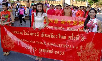 วันเดียวกัน ผู้สื่อข่าวรายงานบรรยกาศการฉลองตรุษจีนที่ จ.เชียงใหม่ ว่า มีการจัดงานไชน่าทาวน์เมืองเชียงใหม่ ครั้งที่ 8 ขึ้นที่ย่านค้าขายคนจีนถนนวิชยานนท์ ต.ช้างม่อย อ.เมือง จ.เชียงใหม่ โดยมีนายชุมพร แสงมณี รอง ผวจ.เชียงใหม่ เป็นประธานเปิดงาน โดยมีนายบุญเลิศ บูรณุปกรณ์ นายกองค์การบริหารส่วนจังหวัดเชียงใหม่ นายทัศนัย บูรณุปกรณ์ นายกเทศมนตรีนครเชียงใหม่ นายเฉลิมศักดิ์ สุรนันท์ ผอ.สำนักงาน ททท.สาขาเชียงใหม่ และนายเหว่ย จุ๊ หมิง กงสุลใหญ่แห่งสาธารณรัฐประชาชนจีน ประจำจังหวัดเชียงใหม่ มาร่วมในพิธีเปิดงาน