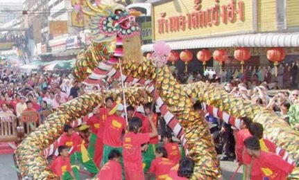 โดยบรรยากาศถือว่ายิ่งใหญ่ มีชาวจีนและนักท่องเทียวทั้งชาวไทยและต่างประเทศมาร่วมงานกันจำนวนมาก และแต่งตัวด้วยเสื้อผ้าสีแดงและสีชมพู มีขบวนแห่เชิดสิงโต และมังกร เป็นขบวนยาวสวยงามเริ่มบริเวณลานข่วงประตูท่าแพ แห่มาตามถนนท่าแพจนมาถึงถนนวิชยานนท์ระยะทางร่วม 1 กิโลเมตร และบริเวณที่จัดงานยังมีการจัดมหกรรมอาหารจีน มาร้านค้าชาวจีนมาเปิดขายอาหารตลอดสองฝั่งถนนวิชยานนท์ และถนนช้างม่อย ทำให้ทั้งชาวไทยและชาวต่างประเทศเที่ยวชมและลิ้มรสอาหารจีนที่มีทุกระดับอย่างเอร็ดอร่อย