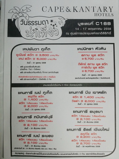 มาอัพเดทกันแบบเต็ม ๆ กับโบรชัวร์ พร้อมโปรโมชั่นภายในงาน งาน "วันธรรมดาน่าเที่ยว" ประจำปี 2558 เพื่อบูมกระแสท่องเที่ยววันธรรมดา ให้ใหญ่กว่าทุกปี โรงแรม ที่พัก สายการบิน บริษัทนำเที่ยวกว่า 400 แห่ง ร่วมจัดโปรโมชั่นลดราคาวันธรรมดา 50% จากผู้ประกอบการชื่อดังจากทุกภูมิภาคทั่วประเทศ ณ บริเวณโซน C ชั้น 1 และ 2 ที่ ศูนย์ประชุมแห่งชาติสิริกิติ์ ว่าแล้วอย่างรอช้าแวะไปส่องโปรโมชั่นแบบเต็ม ๆ ดูไว้ก่อนไปเดินจริงให้แบงค์ร้อยปลิวกันเลยค่ะ