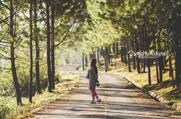 เดินขึ้นเนินเล็ก ๆ บ้างสลับไปกับทางราบ แหงนหน้าขึ้นฟ้าก็เจอต้นสน มองซ้ายมองขวาก็มีแต่ต้นสน เสพสุขจนสมใจ ตกกลางคืนก็นอนในบ้านพักที่แอร์ไม่จำเป็นต้องใช้เพราะด้วยสภาพภูมิประเทศ และความสูงจากระดับน้ำทะเลราว 960 เมตร รับประกันความหนาวเย็นให้กับทุกคนที่เดินทางมาแน่นอน