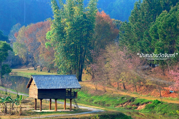 สำหรับที่บ้านวัดจันทร์แห่งนี้หากใครที่เดินทางมาในช่วงปลายฝนต้นหนาวก็จะได้พบกับต้นเมเปิลที่เปลี่ยนใบจากสีเขียวในหน้าฝนเป็นสีส้มสีแดงไปทั่วทั้งต้น ผมเองยังไม่เคยมาในช่วงนั้นแบบจริง ๆ จัง ๆ เพราะทุกครั้งที่มาจะเป็นหน้าหนาวซึ่งใบเมเปิลเหล่านี้ก็เริ่มร่วงหล่นสู่ผืนดินไปบ้างแล้ว