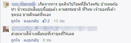 ทั้งนี้ภาพดังกล่าวได้เรียกความสนใจแก่ชาวเน็ตเป็นอย่างมาก มีหลายคนที่แวะเวียนไปลองพิสูจน์ความสวยงามของสถานที่ดังกล่าวให้เห็นกับตา พร้อมออกมาร่วมคอนเฟิร์มถึงความสวยงาม ขณะที่คนอื่น ๆ ยังได้ร่วมให้ข้อมูลด้วยว่า ภาพบ่อน้ำเหล่านี้เกิดจากการขุดบ่อน้ำดินไปถมที่อื่น หรือนำไปขาย ทำให้น้ำในบ่อมีสีเช่นนี้ อย่างไรก็ตามขอเตือนนักท่องเที่ยวอย่าได้คิดจะลงเล่นน้ำ เพราะน้ำบางจุดนั้นมีความลึกมาก อีกทั้งขอบบ่อยังลื่นจนอาจทำให้เป็นอันตรายได้