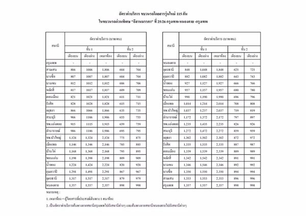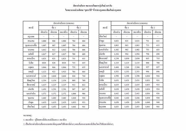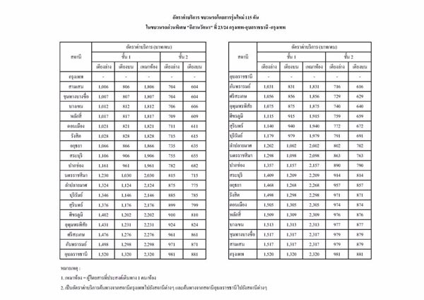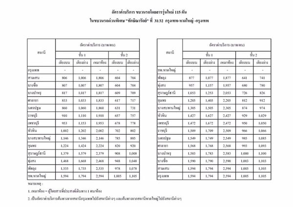 - เส้นทางและราคาขบวนตู้นอนรถไฟโฉมใหม่