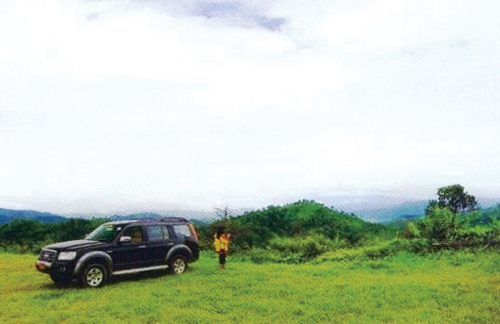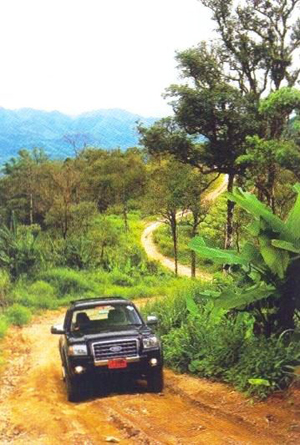 เช้าวันรุ่งขึ้น เราก็ออกไปขึ้น เขากระโจม ที่เป็นสุดยอดเขาของแถบนี้ ด้านบนเป็นที่ตั้งของด่านตำรวจตระเวนชายแดนเช่นกัน เขากระโจม มีความสูงถึง 1,100 เมตร จากระดับน้ำทะเลปานกลาง ทางขึ้น เขากระโจม ช่วงแรกเป็นทางลูกรังสลับหิน ลัดเลาะขึ้นลงไปตามไหล่เขา แต่จะค่อย ๆ ไต่ระดับสูงชันไปเรื่อย ๆ สองข้างทางเต็มไปด้วยป่าไผ่ที่เขียวขจี เราขับไปจนถึงจุดตรวจบุษราคัม