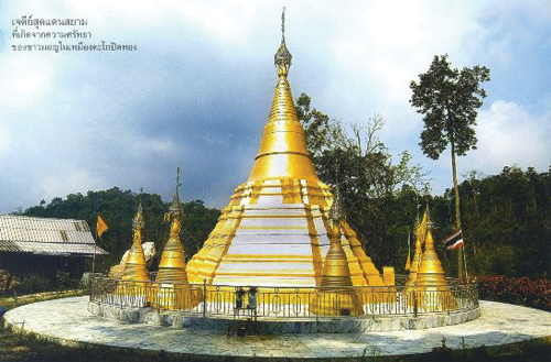 ขากลับก็ใช้เส้นทางเดิมก่อนแวะไป เหมืองตะโกปิดทอง บ้านตะโกล่าง สิ่งแรกที่พบก็คือชุมชนเล็ก ๆ ของคนเหมือง เพราะเหมืองที่นี่ยังทำการอยู่ ขับรถตามเส้นทางชมบริเวณเหมืองแร่วุลเฟรม มีบ่อน้ำสีฟ้าสวยตัดกับกองแร่สีขาว ถ้าเลี้ยวขวาตรงบ่อน้ำเราก็จะไปที่ด่านตะโกปิดทอง ด่านของตำรวจตระเวนชายแดนอีกแห่ง แต่ถ้าตรงไปก็จะเห็นเจดีย์สีทองตั้งตระหง่าน มองเห็นได้ชัดเจน เจดีย์องค์นี้เป็นเจดีย์ทรงมอญ สร้างโดยชาวมอญที่ศรัทธาในพระพุทธศาสนาซึ่งมาทำงานในเหมือง เป็นอันว่าจบการเดินทางของเราเที่ยวนี้เพียงเท่านี้