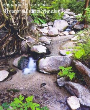 จากบ้านหอมเทียน ขับไปเรื่อย ๆ ก่อนแวะที่ ธารน้ำร้อนบ่อคลึง ธารน้ำร้อนธรรมชาติที่มีต้นกำเนิดจากเทือกเขาตะนาวศรี มีน้ำไหลตลอดปี เป็นน้ำร้อนบริสุทธิ์ อุณหภูมิของน้ำประมาณ 120 - 136 องศาฟาเรนไฮต์ มีบ่อน้ำร้อนและสระน้ำสำหรับอาบน้ำร้อนธรรมชาติ และข้าง ๆ กันก็มีโรงงานผลิตน้ำแร่ธรรมชาติ เป็นอันว่าใช้น้ำร้อนได้ครบวงจรดี