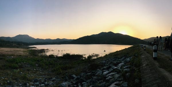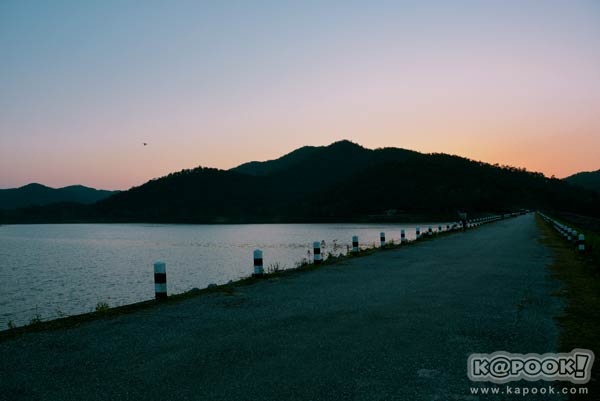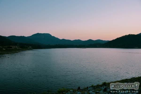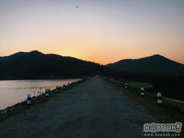 ไฮไลท์เด็ดที่ห้ามพลาดอย่างหนึ่งของหมู่บ้านปง-ห้วยลาน ก็คือ "อ่างเก็บน้ำห้วยลาน" ซึ่งจะมีถนนทอดยาวอยู่บนสันเขื่อนให้เราได้ไปเดินเล่นชมวิว อยากจะบอกว่าที่นี่บรรยากาศดีมากทั้งตอนเช้าและตอนเย็น ถ้าเรายืนอยู่บนสันเขื่อน มองออกไปจะเห็นแนวภูเขาที่อยู่ในเขตป่าสงวนแห่งชาติป่าแม่ออนและยอดดอยง้ม ตอนที่เราไปถึงอ่างเก็บน้ำเป็นช่วงพระอาทิตย์กำลังจะตกดินพอดี ก็จะเห็นแสงอ่อน ๆ ของพระอาทิตย์ฉาบทาไปทั่วผืนป่าและแนวภูเขา โดยเฉพาะบริเวณดอยง้ม ที่มีลักษณะคล้ายกับภูเขาในต่างประเทศเลยทีเดียว อากาศยิ่งไม่ต้องพูดถึง ลมเย็นฉ่ำใจและสดชื่นมาก งานนี้เลยได้สูดอากาศลึก ๆ แบบเต็มปอดจนจุใจไปเลยค่ะ