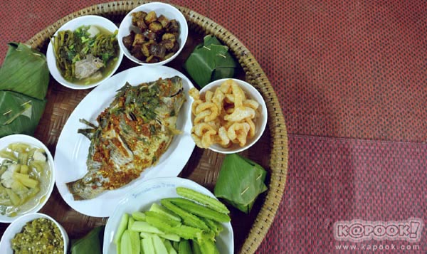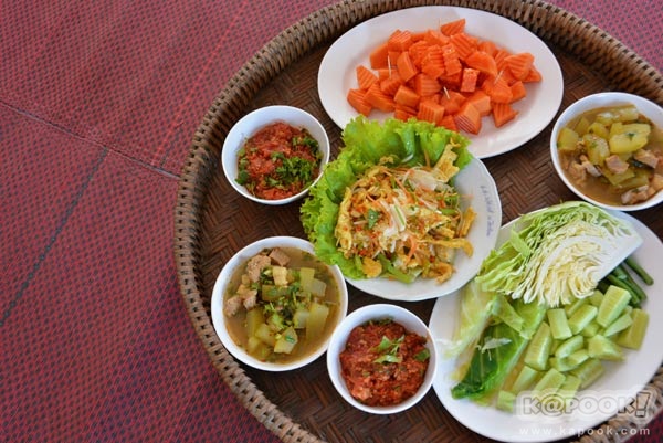 เริ่มหิวแล้วกันค่ะ เราขยับขยายไปเรื่องกินกันต่อดีกว่า ชาวบ้านก็น่ารักอีกตามเคย เตรียมอาหารพื้นเมืองไว้ให้เราเรียบร้อย ดูจากหน้าตาอาหารอาจจะดูจืด ๆ แต่ ! อย่าตัดสินกันแค่ที่หน้าตาค่ะ เพราะเราพิสูจน์มาแล้วว่ารสชาติอาหารที่นี่อร่อยล้ำ "ลำแต้ ๆ" ตักข้าวกิน 2 จาน ยังรู้สึกว่าไม่พอเลย ^_^ ไม่เพียงเท่านั้น แต่ละเมนูยังเป็นอาหารสุขภาพ เต็มไปด้วยผักปลอดสารพิษที่ชาวบ้านปลูกกันเอง และวัตถุดิบที่หาได้ในชุมชน อร่อยด้วย และสุขภาพก็ดีด้วย ฟินจนไม่รู้จะฟินยังไงแล้วค่ะ