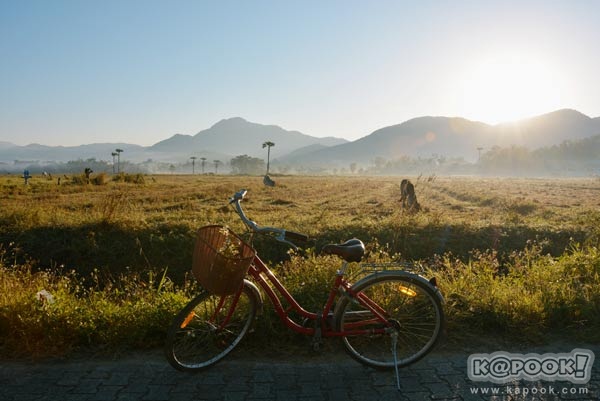 ถึงจะเข้าสู่เดือนกุมภาพันธ์แล้ว แต่อากาศที่บ้านปง-ห้วยลาน ยังคงหนาวเย็น อย่างเช้านี้ตื่นมาแอบตกใจเบา ๆ อุณหภูมิอยู่ที่ 15 องศาเซลเซียส พอดิบพอดี พูดทีควันออกปากเลยทีเดียว และถือเป็นความโชคดีที่รีสอร์ทที่เราพักมีจักรยานให้ยืมไปปั่นเล่นชิล ๆ ได้ด้วย แล้วจะรออะไรล่ะคะ หยิบกล้องได้ก็คว้าจักรยานออกไปสัมผัสลมหนาวกันเลย