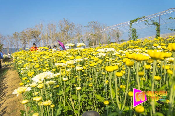 นอกจากดอกเบญจมาศสวย ๆ แล้ว ยังมีการจัดแสดงสวนดอกไม้นานาชนิด และการจำหน่ายผลิตภัณฑ์ทางการเกษตร เช่น สตรอว์เบอร์รี แหนมเห็ด เมลอน พุทรานมสด และอาหารเกษตรแปรรูปหลายชนิดอีกด้วย โดเฉพาะอย่างยิ่ง…ใครที่มาเที่ยวในช่วงเช้า ไม่แน่ว่าคุณอาจจะได้สัมผัสอากาศเย็น ๆ รวมถึงหมอกบาง ๆ ที่ลงมาปกคลุมแปลงสวนดอกไม้โดยรอบ บอกเลยว่าเป็นบรรยากาศที่แสนจะโรแมนติก เหมาะกับการพาคนรักมาเดินเล่น ต้อนรับเทศกาลแห่งความรักพอดี