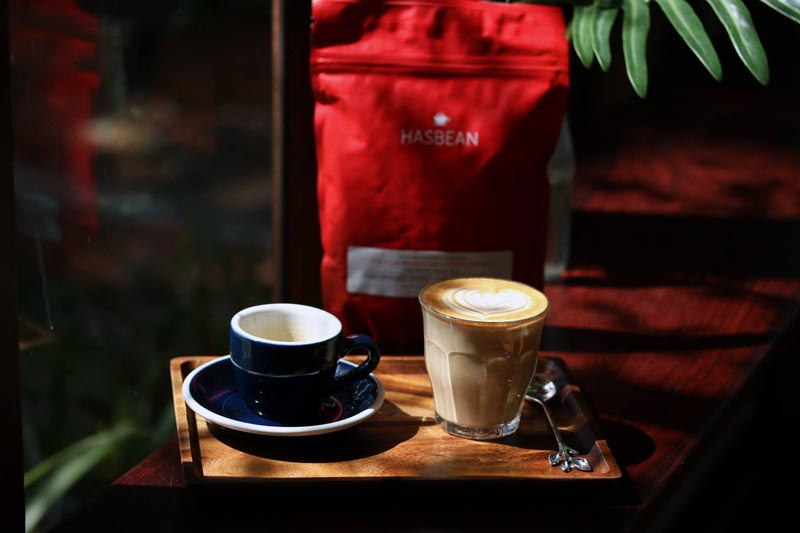 Hai Coffee คาเฟ่เก๋ ๆ ที่น่านั่งพักผ่อน ตัวร้านออกแบบมาอย่างน่ารักด้วยสีน้ำตาลอ่อนสดใส ตกแต่งสไตล์โมเดิร์น ใช้ผนังกระจกเป็นตัวทำให้ตัวร้านดูโปร่งโล่ง มีพื้นที่ให้นั่งทั้งในตัวร้านและสวนสวยร่มรื่นด้านนอกร้าน มีเมนูเครื่องดื่มร้อน-เย็นให้เลือกทานมากมาย และเมนูอาหารทั้งคาวและหวานไว้เตรียมเสิร์ฟอีกเพียบ