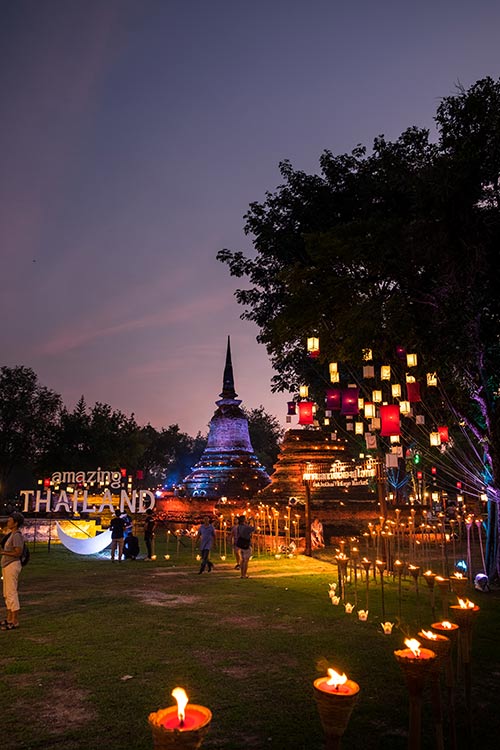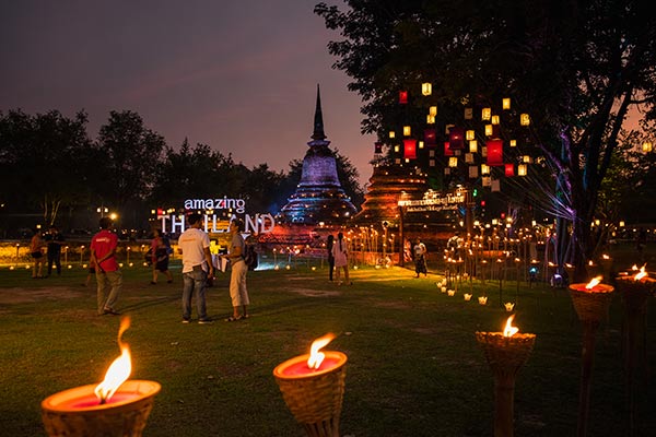 งานประเพณีลอยกระทง เผาเทียน เล่นไฟ จังหวัดสุโขทัย ประจำปี 2560 / ภาพจาก ททท. สุโขทัย