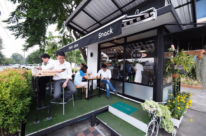 เป็นร้านกาแฟเปิดโล่งกลางแจ้ง มีมุมที่นั่งให้ลูกค้าได้มองเห็นวิวสวย ๆ