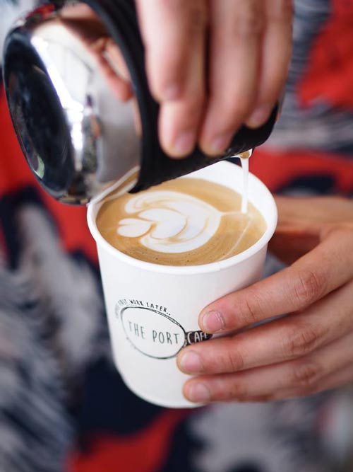 The Port Cafe\' ร้านกาแฟเล็ก ๆ ในท่าเรือแหลมฉบัง ตั้งอยู่ใกล้กับศูนย์เศรษฐกิจการลงทุนภาคที่ 4 แหลมฉบัง (BOI) ที่นี่โดดเด่นในเรื่องของกาแฟ เพราะมีการคัดเลือกเมล็ดกาแฟอาราบิก้า 100 % มาทำเป็นเมนูกาแฟสุดอร่อยให้ลูกค้า รสชาติกาแฟจึงเข้มข้น อร่อยละมุน เมนูเครื่องดื่มอื่น ๆ ก็มีการคัดสรรวัตถุดิบอย่างดี เมนูเครื่องทั้งร้อน-เย็นอื่น ๆ จึงรสชาติอร่อยไม่แพ้กัน เป็นอีกหนึ่งทางเลือกดี ๆ ของนักท่องเที่ยวที่ผ่านมาทางฝั่งนี้