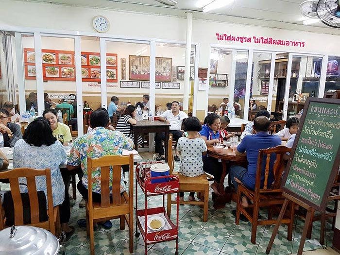ต้องรีบตื่นเช้าเพราะช้าหมดอดกิน ร้านนี้ต้องห้ามพลาดปาท่องโก๋ยักษ์คู่ตัวยาวอันเป็นเอกลักษณ์ มาพร้อมสังขยาสีเขียวหวานหอม กินกับข้าวต้มปลา ข้าวต้มหมู หรือข้าวต้มกุ้งยิ่งฟิน เมนูอื่น ๆ ที่น่าลอง เช่น ขนมจีบ ฮะเก๋า เมนูของทอดอื่น ๆ ส่วนเครื่องดื่ม เช่น ชา กาแฟ โกโก้ ชาเย็น เป็นต้น