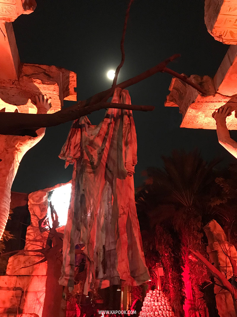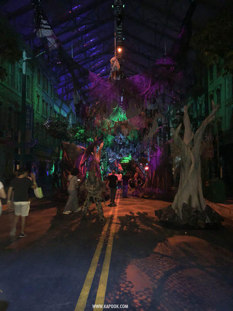 - อากาศร้อนมาก ถึงแม้จะเป็นตอนกลางคืนก็เถอะ แต่สภาพอากาศที่ Universal Studio Singapore ค่อนข้างจะร้อนและอบอ้าวมากนะคะ แนะนำให้ใส่เสื้อผ้าที่สบาย ๆ นะคะ (เพราะวิ่งหนีผีเหงื่อตกแน่นอน)