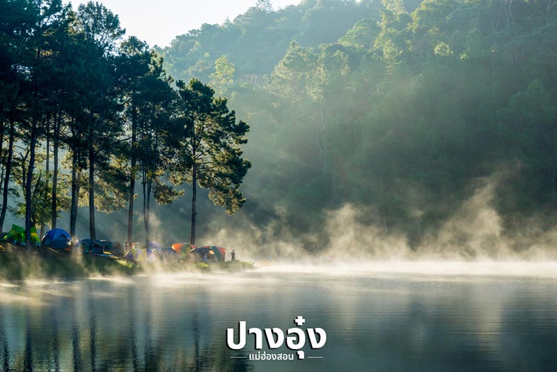 ในช่วงเดือนธันวาคม-มกราคมของทุกปี เป็นช่วงหน้าเทศกาลที่นักท่องเที่ยวเดินทางมาเที่ยวปางอุ๋งเป็นจำนวนมาก ซึ่งไฮไลต์ที่นี่คือการได้เห็นภาพของหมอกยามเช้าบนผิวน้ำเหนือทะเลสาบ พร้อมกับอากาศเย็น ๆ บอกเลยว่าบรรยากาศโรแมนติกแบบสุด ๆ นักท่องเที่ยวสามารถกางเต็นท์นอนพักค้างแรมได้