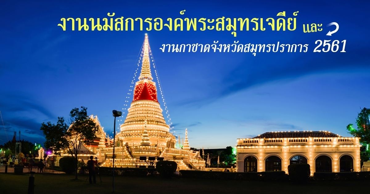 เชิญร่วมงานนมัสการองค์พระสมุทรเจดีย์และงานกาชาดจังหวัดสมุทรปราการ ประจำปี 2561 ระหว่างวันที่ 29 ตุลาคม - 9 พฤศจิกายน ณ บริเวณฝั่งอำเภอเมืองสมุทรปราการและอำเภอพระสมุทรเจดีย์