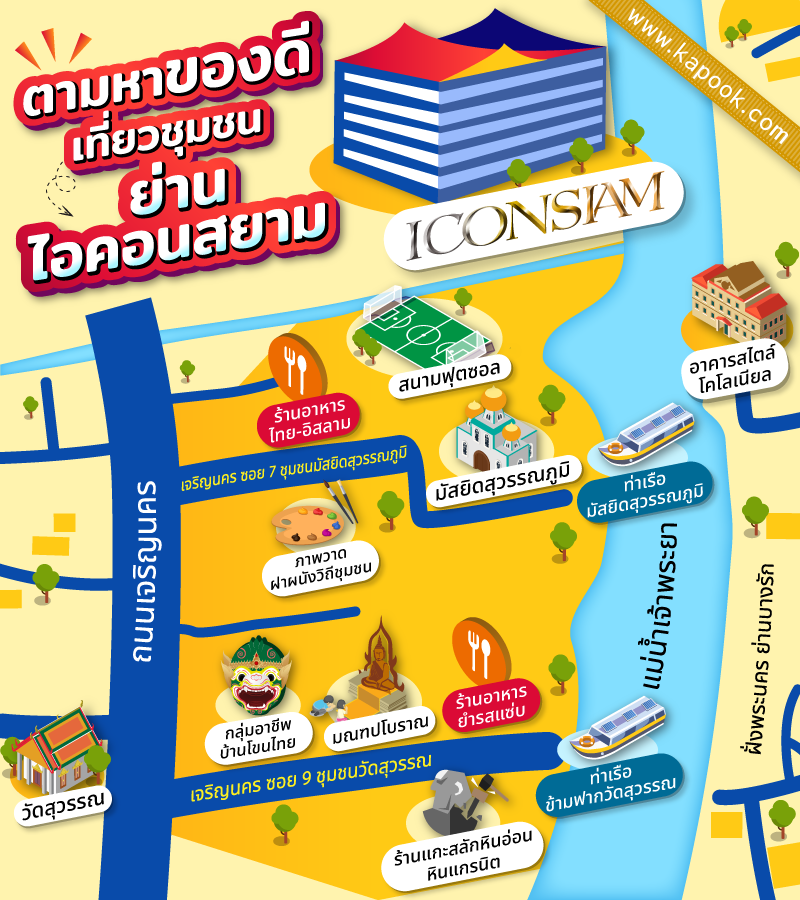 ทั้งหมดนี้เป็นเพียงสถานที่ท่องเที่ยวบางส่วนที่เราหยิบยกมาแนะนำเพียงเท่านั้น จริง ๆ แล้ว ทั้ง 2 ชุมชนยังมีจุดเด่นทางวัฒนธรรม โดยเฉพาะในช่วงเทศกาลอีกมากมาย เพื่อนๆ ที่มาช้อปปิ้งที่ไอคอนสยามเสร็จแล้ว อยากหาที่ท่องเที่ยวเชิงวัฒนธรรมเพิ่มเติม ลองไปสัมผัสกับทั้ง 2 ชุมชนนี้ดู รับรองมีอะไรมากกว่าที่คุณคิด