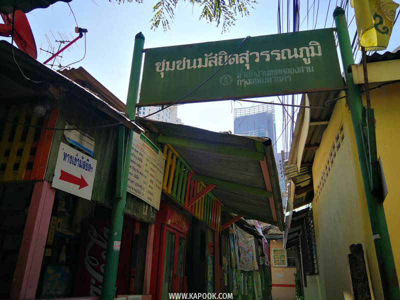 เราเริ่มที่ชุมชนมัสยิดสุวรรณภูมิเป็นที่แรก ที่นี่เป็นชุมชนชาวมุสลิม เดิมชื่อชุมชนบ้านแขก วัดสุวรรณ สร้างขึ้นในสมัยรัตนโกสินทร์ตอนต้นโดยชาวมุสลิมที่อพยพมาจากจังหวัดพระนครศรีอยุธยาและจังหวัดตราด โดยการนำของขุนรามฤทธิไกร (นายอะหมัด โตประวัติ)