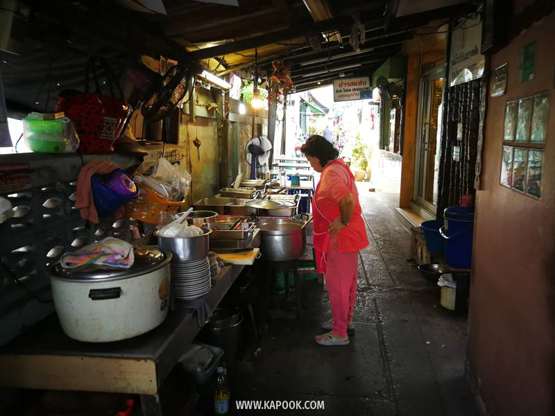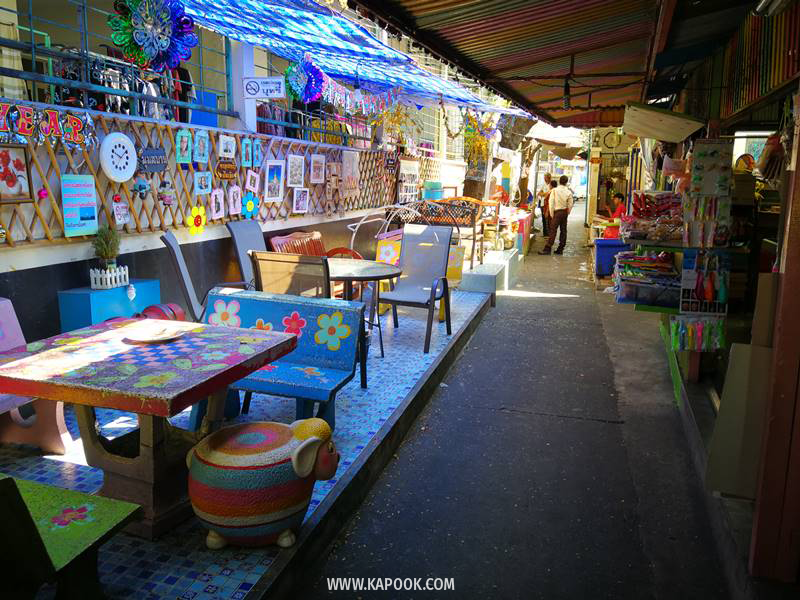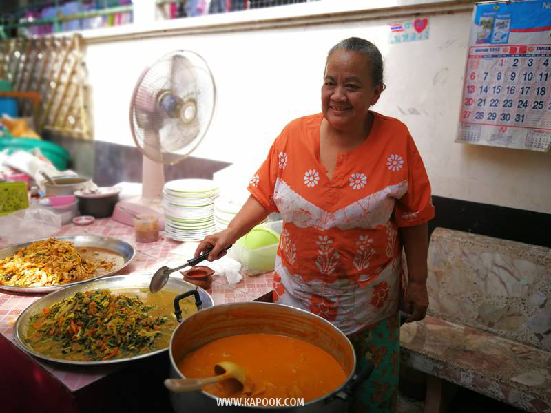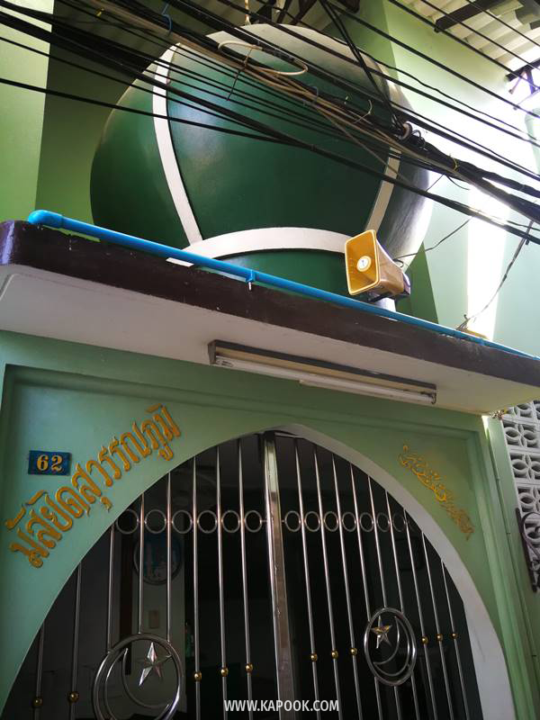 ให้เลี้ยวซ้ายเดินตรงเข้าไปประมาณ 100 เมตร จะพบจุดเช็กอินแรก จะเป็นย่านร้านอาหารไทย-อิสลาม มีให้เลือกทั้งอาหารตามสั่ง และข้าวแกงต่าง ๆ