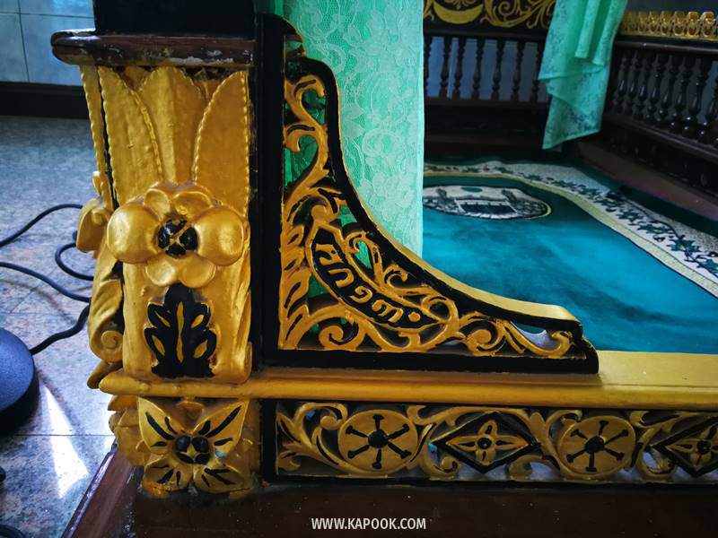 นอกจากนี้ยังมี\'มิรบัญ (ที่สำหรับแสดงธรรม) และ เมียะหร็อบ (ที่สำหรับอิหม่ามนำละหมาด) ซึ่งเป็นงานไม้แกะสลักฝีมือประณีต สร้างในสมัยรัชกาลที่ 5