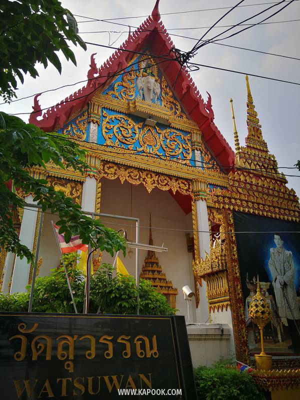 ก่อนเข้าไปเที่ยวในชุมชน แนะนำให้ข้ามถนนเจริญนครไปกราบสักการะพระพุทธรูปโบราณ สมัยสุโขทัย ที่วัดสุวรรณ
