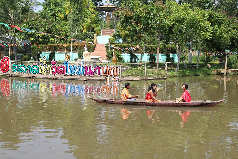 ตลาดน้ำ อิ่มบุญ อุ่นใจ วัดใหม่นาบุญ เปิดให้บริการทุกวันอาทิตย์ ตั้งแต่เวลา 07.00-15.00 น.