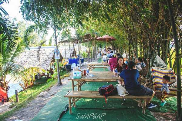 หรือใครอยากจะสัมผัสความชิลให้มากขึ้นไปอีก ที่นี่ก็มีเปลไม้ไผ่ให้นอนแกว่งเล่นสบาย ๆ หรือจะเป็นโซนท่าน้ำ อีกหนึ่งโซนที่จะทำให้คุณฟินกับบรรยากาศธรรมชาติไม่แพ้กัน หรือใครทำกิจกรรมจนเหนื่อย อยากหาของกินเติมพลัง ที่นี่ก็มีอาหารอร่อย ๆ น่าลองอยู่เพียบ เช่น ก๋วยเตี๋ยวเรือชามยักษ์, ข้าวมันไก่, พิซซ่า และกาแฟสด เป็นต้น นอกจากนี้แล้วก็ยังมีสินค้าทางการเกษตร ผักปลอดสารพิษ และสินค้าชุมชนขายอีกด้วย ไปเที่ยวแล้วรับรองว่าได้ของติดไม้ติดมือกลับไปแน่นอน